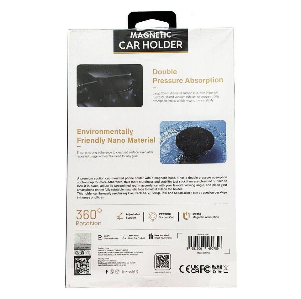 Linktech H871 360° dönebilme kabiliyetiyle çok yönlü kullanım sunan dayanıklı ve hafif bir cihaz tutucudur. Ayarlanabilir destek özelliği, kullanıcıya farklı açılarla esnek bir kullanım sağlar. Güçlü vakumlu tabanı ve güçlü manyetik tutuşu, cihazlarınızı güvenli ve stabil bir şekilde sabitlemek için tasarlanmıştır.