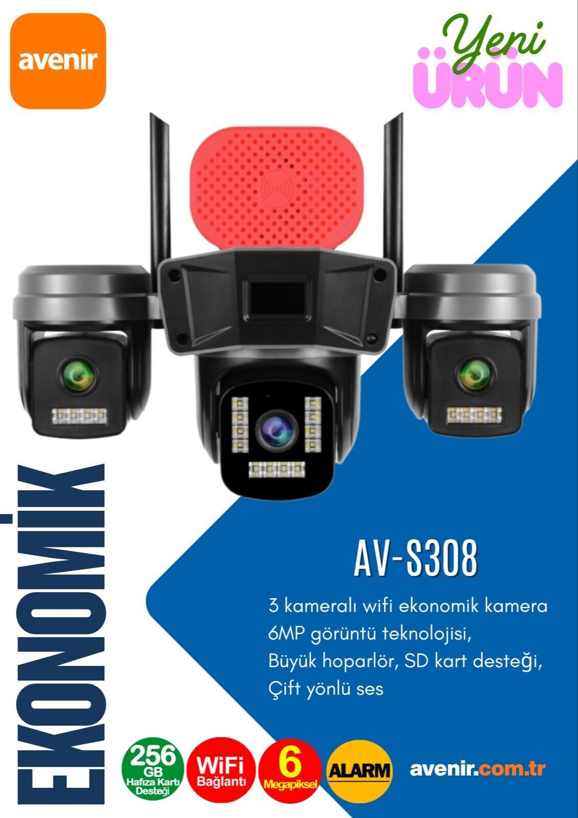 Avenir AV-S308 6MP 3 Kameralı Ptz Wifi Kamera