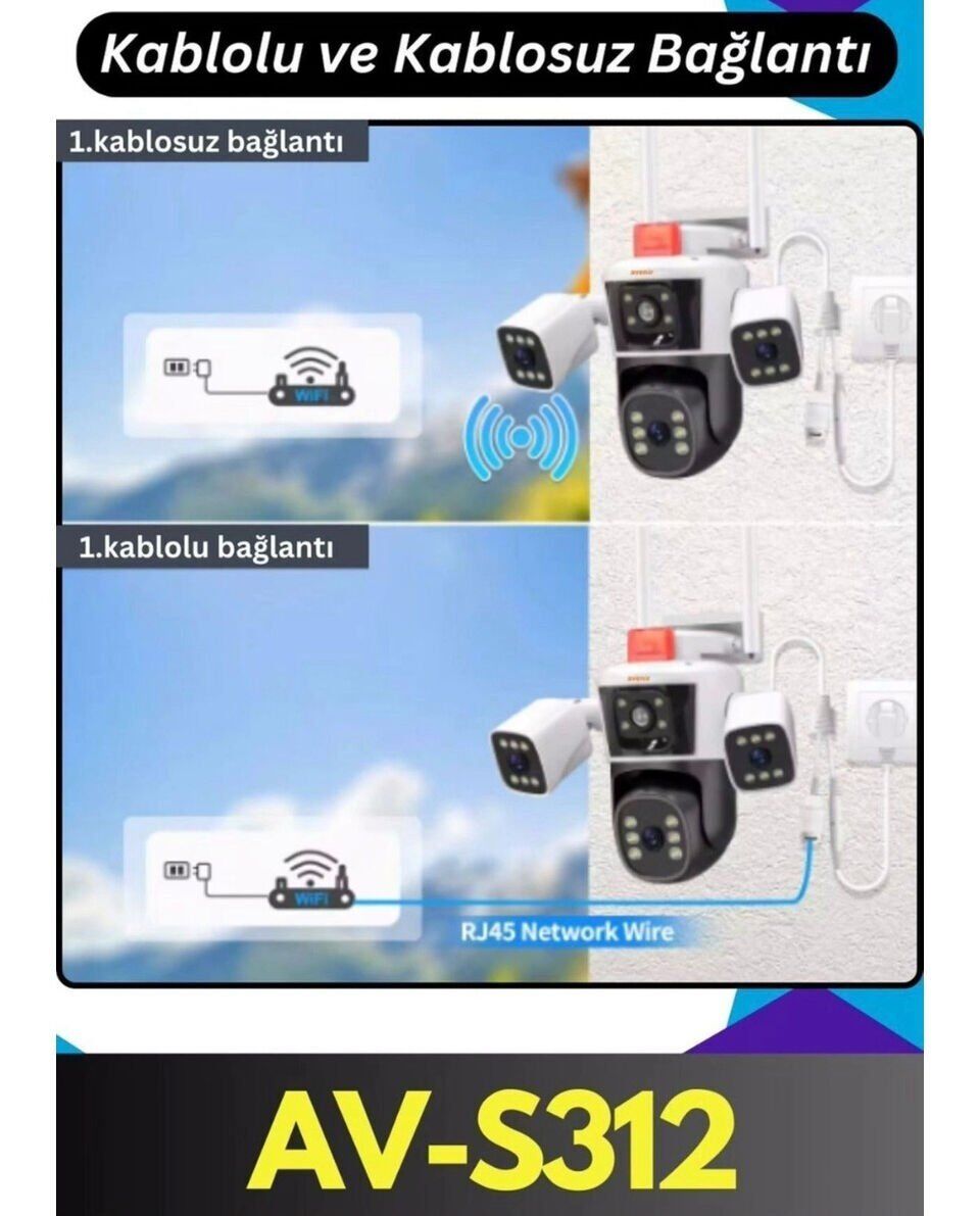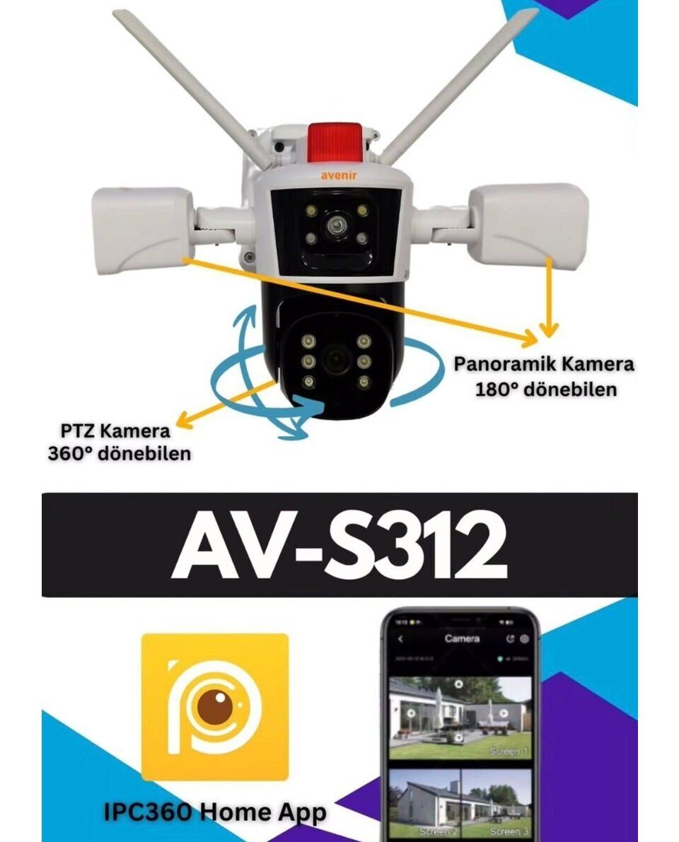 Avenir AV-S312 Wi-Fi Akıllı Ip ve Kablolu çift başlıklı 3 Lens 3 Kameralı 12 Mega Piksel