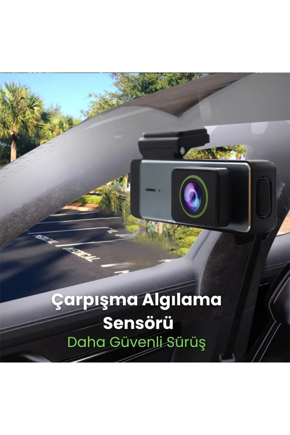 Yüksek çözünürlükte ön + arka kayıt desteği ile trafikte veya park halindeyken her anı güvence altına alır.