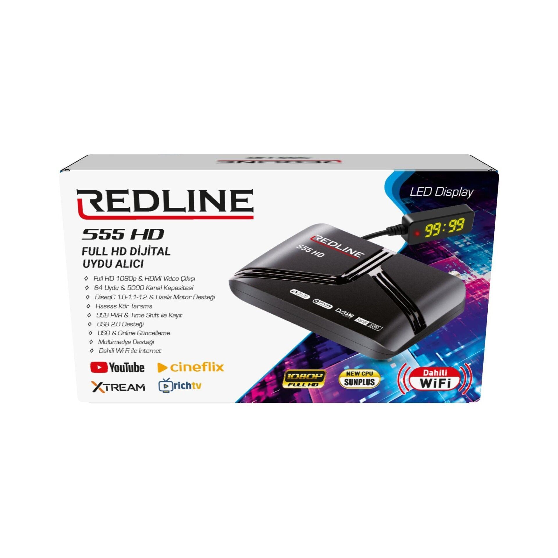 Redline S55 Dahili Wifi Full Hd Uydu Alıcısı Bluetooth kumanda