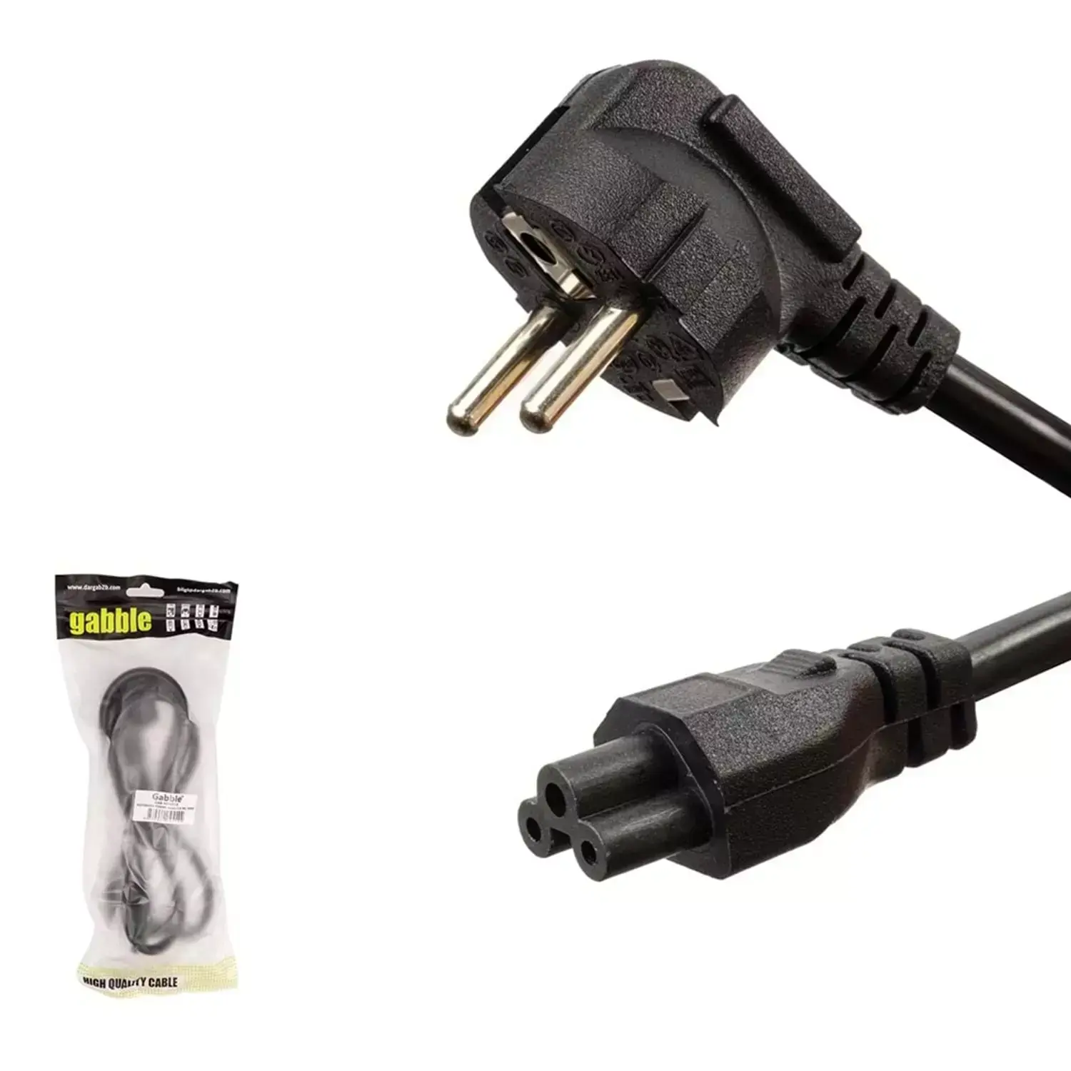 GABBLE GAB-NYK015 1.5 Mt 0.75 MM Seramik Uç Yonca Kablo yüksek güç gerektiren cihazlar ile güç kaynakları arasında güvenli ve kesintisiz bir enerji akışı sağlamak üzere tasarlanmış, profesyonel kalitede bir yonca (C5) tipi güç kablosudur. Özellikle laptop adaptörleri, projeksiyon cihazları ve bazı LED TV'ler için ideal olan bu kablo, seramik uç yapısı sayesinde aşırı ısınmaya karşı ekstra direnç göstererek sisteminizi güvence altına alır.
