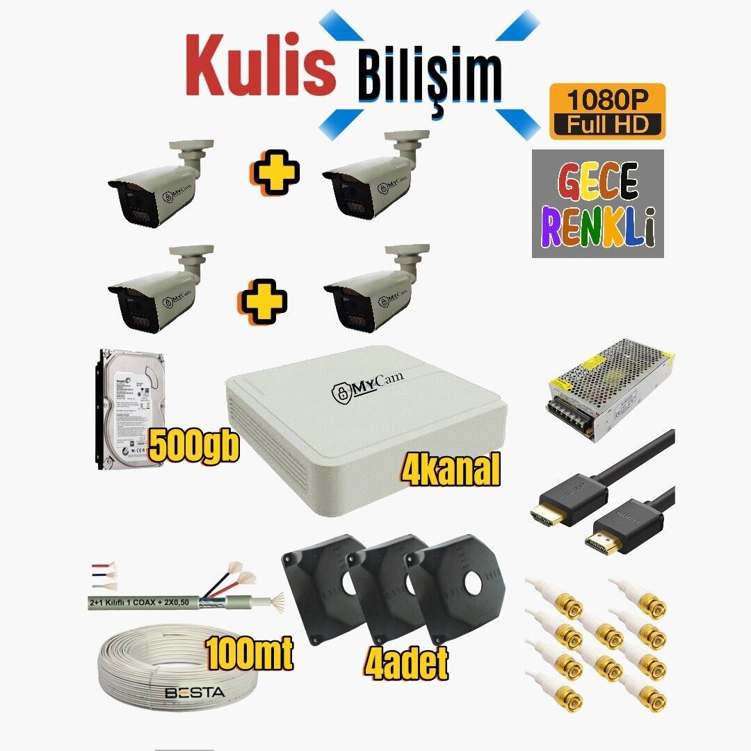 - "Ev ve iş yeriniz için kesintisiz güvenlik! Mycam 4'lü gece görüşlü led ışıklı kamera paketi, zifiri karanlıkta bile renkli görüntü sunar. 500GB disk, kablo ve tüm aksesuarlarıyla birlikte gelen bu Full Set, Xmeye mobil izleme desteğiyle her an yanınızda. Hemen inceleyin!"