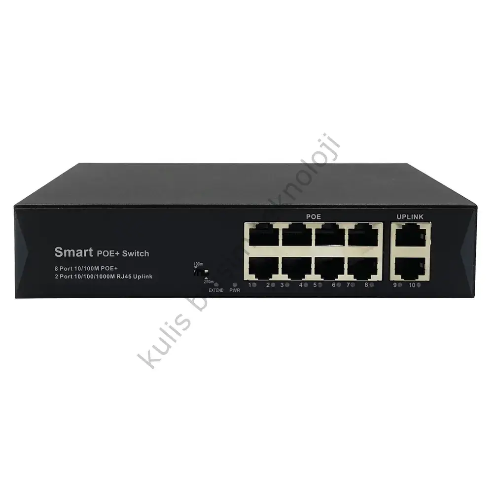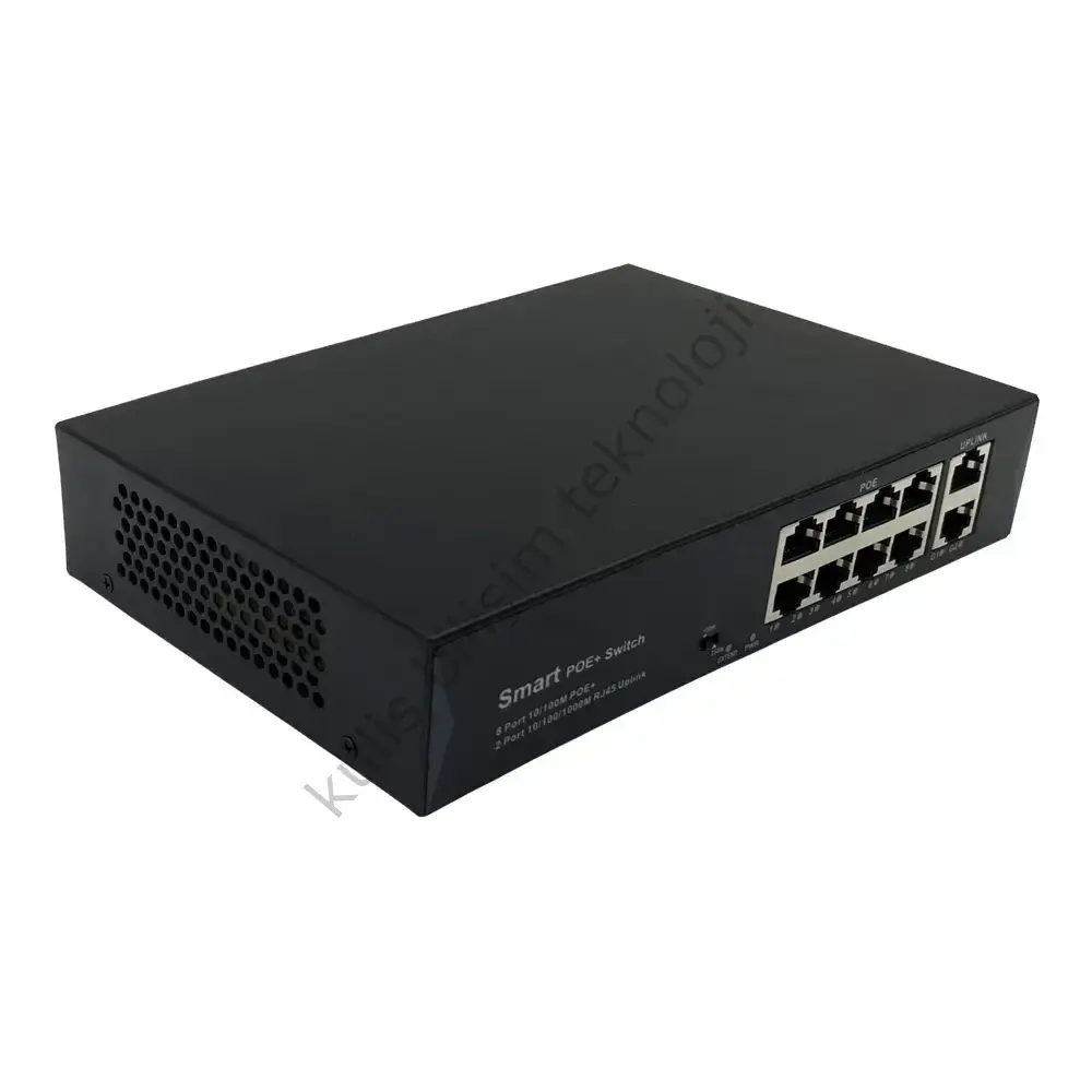 Bu switch, 8+2 port yapısı sayesinde veri ve güç iletimini tek kablo üzerinden sağlar. 100W toplam poe gücü, bağlı cihazlarınızın kesintisiz çalışmasını garanti eder. Ağ trafiğini optimize eden tasarımı sayesinde hızlı ve kararlı bağlantılar sunar.