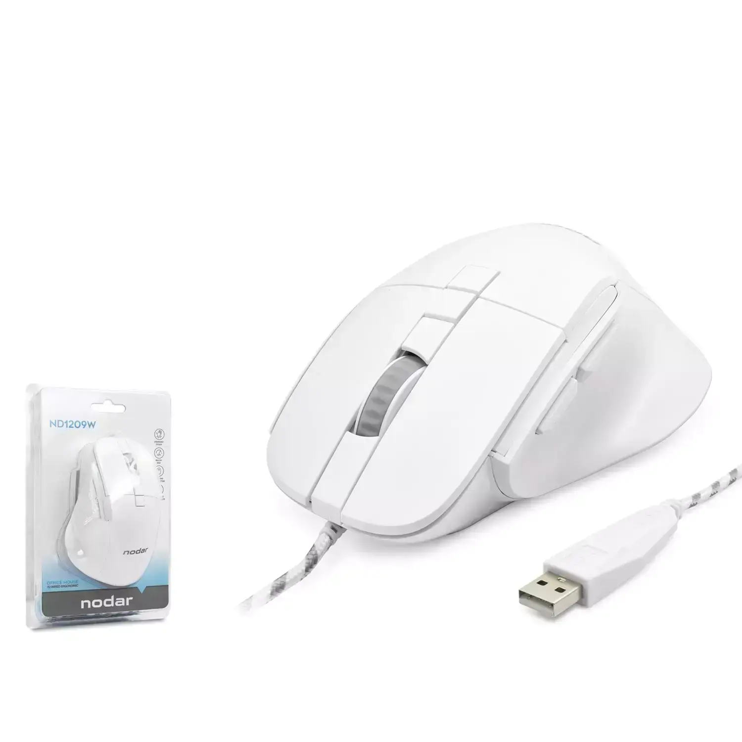 NODAR ND1209W 7 Tuşlu 3600 DPI Beyaz Örgü Kablolu Mouse